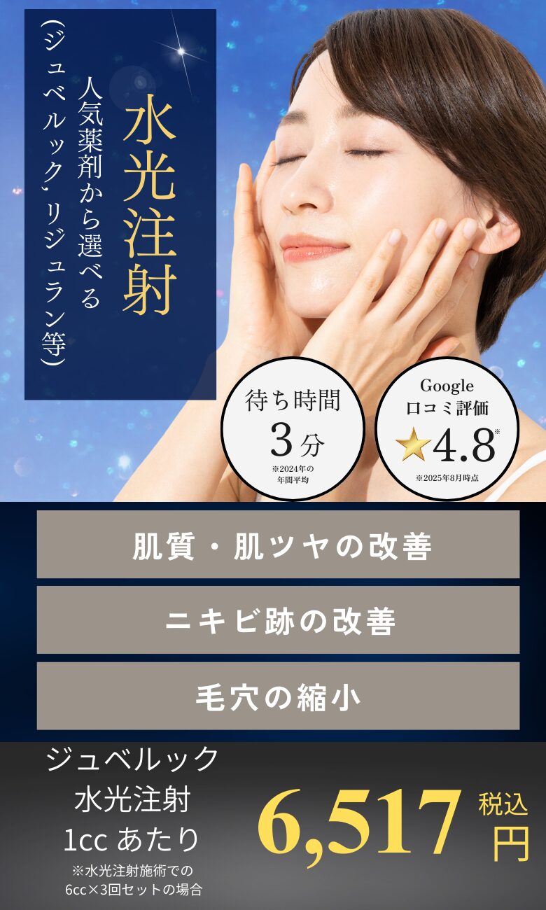 Sin embargo, si se somete a inyecciones hidrológicas en una clínica extranjera, existe la posibilidad de que el tiempo de inactividad sea grave. Esto se debe a que en algunos casos en el extranjero, el tratamiento se lleva a cabo basándose en la idea de que "se da prioridad al efecto y que es aceptable aunque el tiempo de inactividad sea grave".