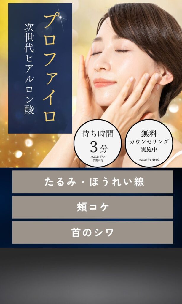 本施術に使用する医薬品・医療機器は、日本国内において承認されたものではなく、諸外国における使用実績や安全性に関する情報をもとにご提供しております。具体的に、プロファイロは現在80ヵ国以上で導入されているヒアルロン酸です。 世界で50万症例以上が報告されている他、AMEC & AESTHETICS受賞実績もあり、安全性や効果が諸外国では認められているヒアルロン酸です。