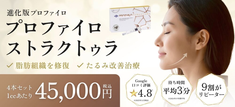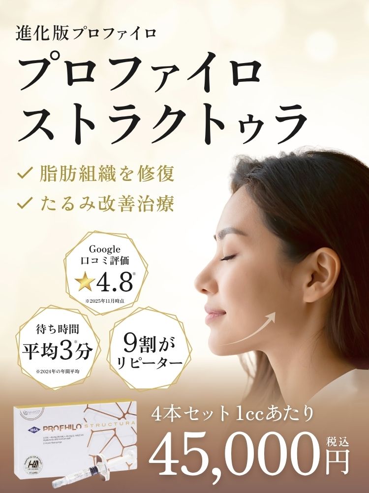 프로필로스트럭투라는 이러한 홈에 직접 주입하여 '채우는' 치료가 아닙니다. 그 원인인 '볼 지방의 처짐'을 지방 조직의 재구성을 통해 들어올립니다.